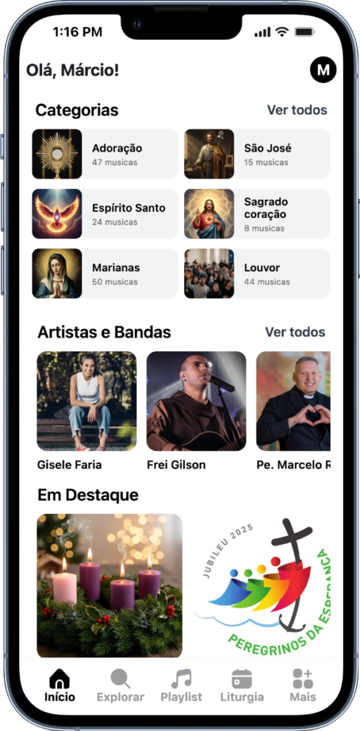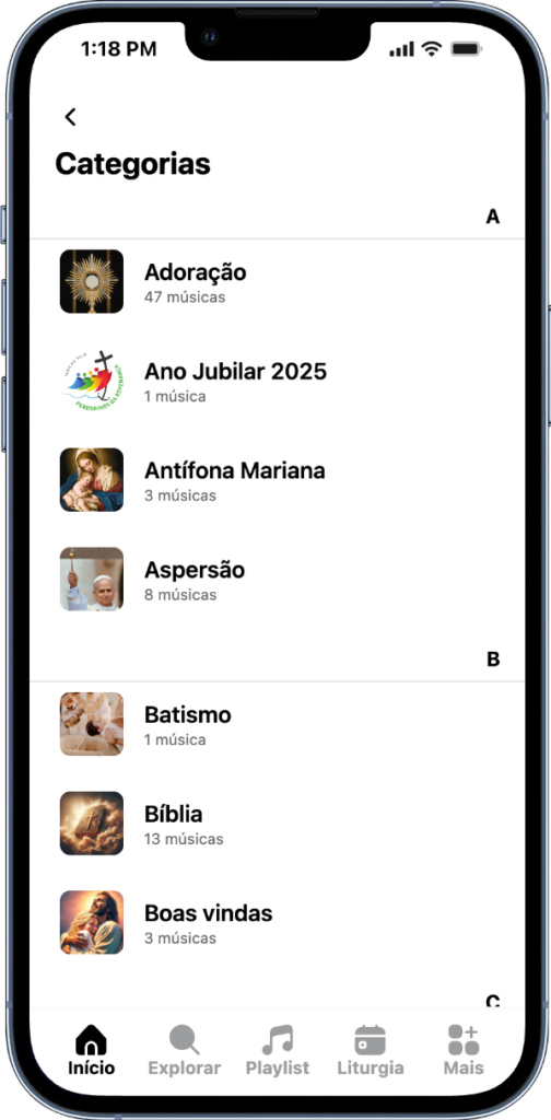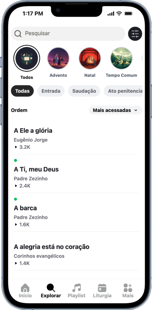 Navegue nos conteúdos por categorias, encontre músicas por tema, sacramentos, momentos e muito mais