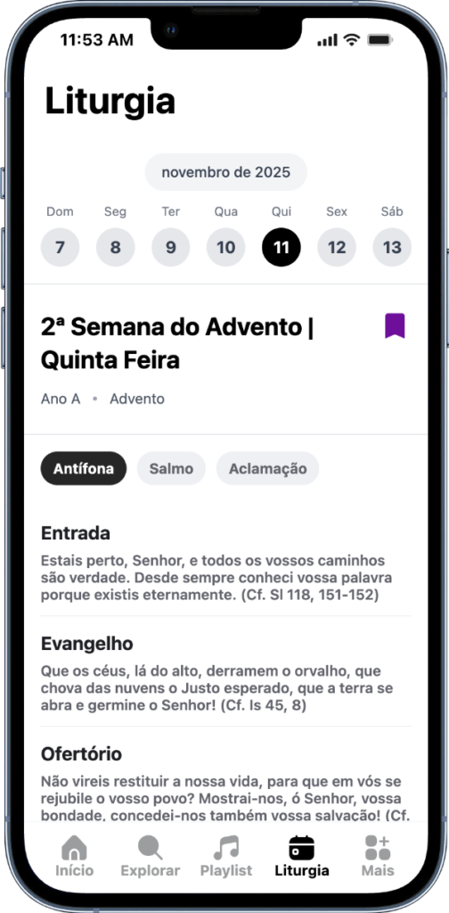 Encontre rapidamente a música certa para cada momento da missa com filtros inteligentes.